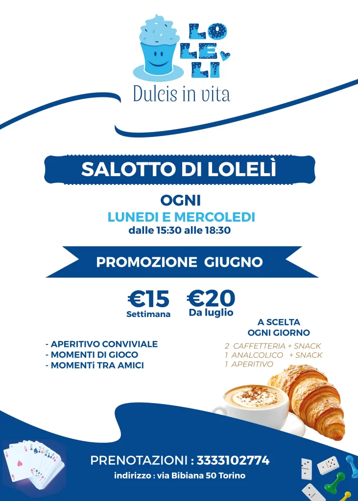 Ogni lunedì e mercoledì, la caffetteria Lolelì si trasforma in un salotto speciale dove condividere tempo di qualità, giocare insieme e gustare la nostra selezione di dolci e bevande in un’atmosfera accogliente e inclusiva.